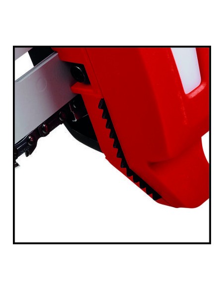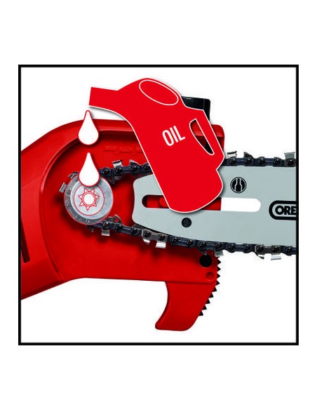 La superficie di presa gommata aggiuntiva permette un utilizzo ergonomico e garantisce una presa salda e sicura. Inoltre, lo svettatoio è dotato di una comoda tracolla. I robusti ingranaggi in metallo garantiscono la massima durata dell'attrezzo. L' artiglio raccogli catena è in metallo e lo svettatoio dispone di un perno raccogli catena per un utilizzo in maggiore sicurezza. La lubrificazione della catena si svolge in maniera automatica.