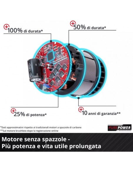Leggero e maneggevole (solo 9,19 kg), è dotato di impugnatura di guida ripiegabile per un facile stoccaggio e di maniglia integrata per un trasporto agevole. L’indicatore LED integrato consente di controllare a colpo d’occhio il livello di carica della batteria. Il caricabatteria e batteria inclusi nella confezione.