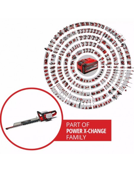 Potente, preciso e completamente senza fili, il tagliasiepi a batteria GE-CH 36/65 Li-Solo di Einhell è lo strumento perfetto per la manutenzione di siepi, cespugli e arbusti anche su ampie superfici. Fa parte della gamma Power X-Change, il sistema modulare di Einhell che consente di utilizzare le stesse batterie su una vasta gamma di attrezzi per casa, officina e giardino.