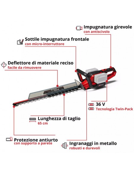 Tagliasiepi a batteria 36V Einhell GE-CH 36/65 Lunghezza Taglio 65 cm