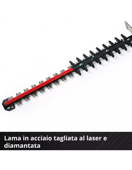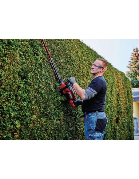 Alimentato da 2 batterie da 18V (per un totale di 36V), questo tagliasiepi garantisce fino a 2.700 tagli al minuto grazie alle lame in acciaio tagliate al laser e affilate al diamante, perfette per ottenere tagli netti e precisi anche su rami spessi fino a 30 mm di diametro. La lunghezza di taglio di 65 cm lo rende ideale per interventi su siepi lunghe e alte.