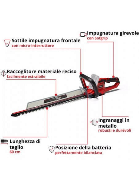 Tagliasiepi a batteria 18V Einhell GE-CH 18/60 Li Solo lunghezza taglio 60 cm denti al diamante