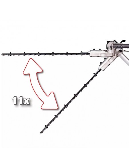 Per adattarsi a ogni situazione, la testa di taglio può essere inclinata in 11 diverse posizioni, mentre l’impugnatura posteriore girevole facilita i tagli sia verticali che orizzontali. La struttura compatta e bilanciata, le superfici Softgrip e la tracolla regolabile con sgancio rapido rendono l’utilizzo confortevole e meno faticoso anche nelle sessioni prolungate.