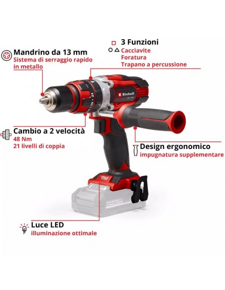 Trapano avvitatore a Percussione Einhell TE CD 18/48 doppia velocità foratura e avvitatura Potente 48Nm mandrino 13 mm metallo