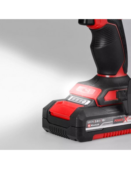 Il design compatto, l'impugnatura ergonomica con rivestimento Softgrip e la clip per cintura migliorano il comfort d’uso e la maneggevolezza anche durante lunghi interventi. La luce LED integrata consente di lavorare in modo preciso anche in condizioni di scarsa visibilità. Grazie al sistema Power X-Change, le batterie incluse possono essere usate con tutti gli utensili della linea Einhell.