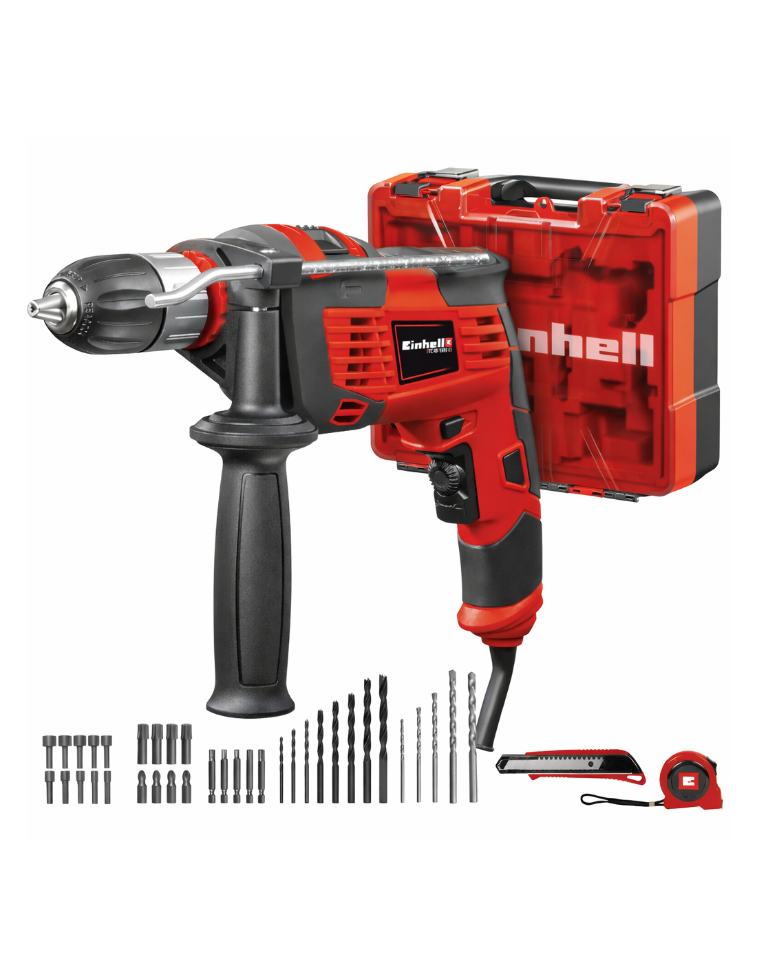 Trapano a Percussione Einhell TC-ID 1000 E Kit + 64 Accessori con Valigetta e Mandrino 13 mm