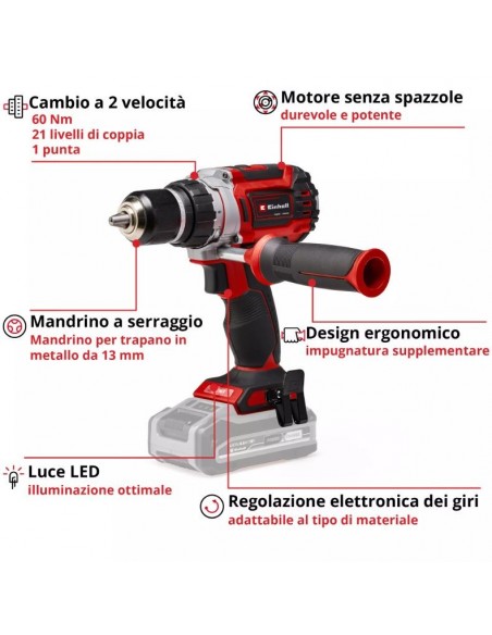 Trapano Avvitatore a Batteria Einhell TP-CD 18/60 Li BL-Solo – Motore Brushless 60 Nm