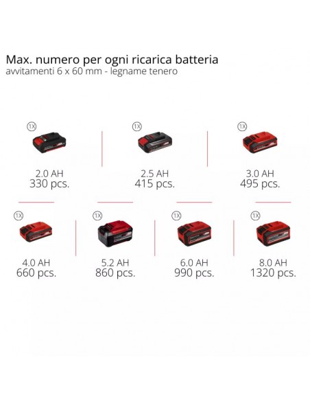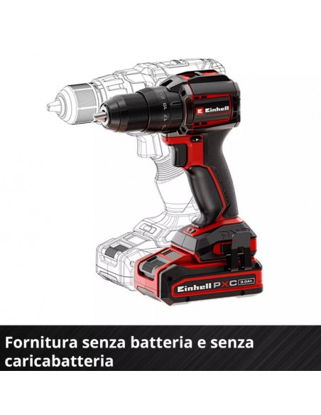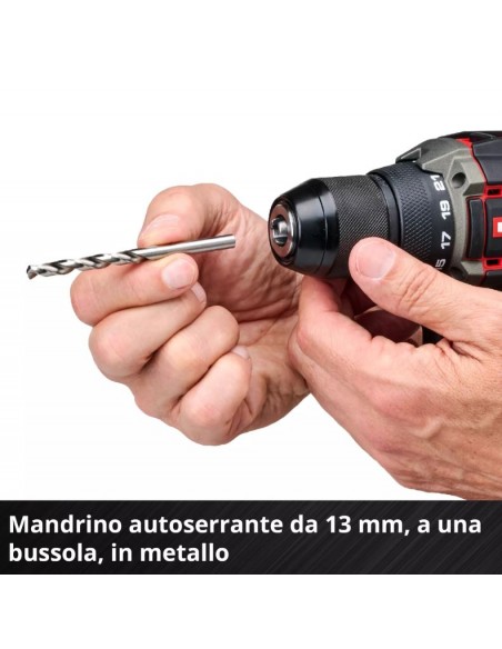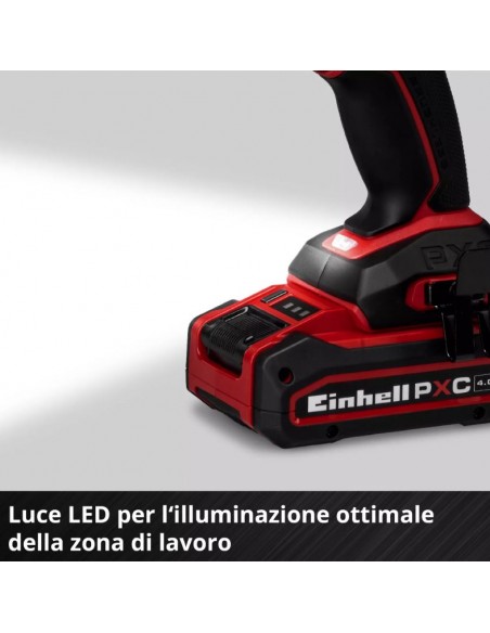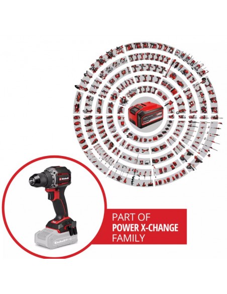 Il trapano è compatibile con tutte le batterie Einhell Power X-Change 18V, permettendo l’utilizzo della stessa batteria su più utensili.