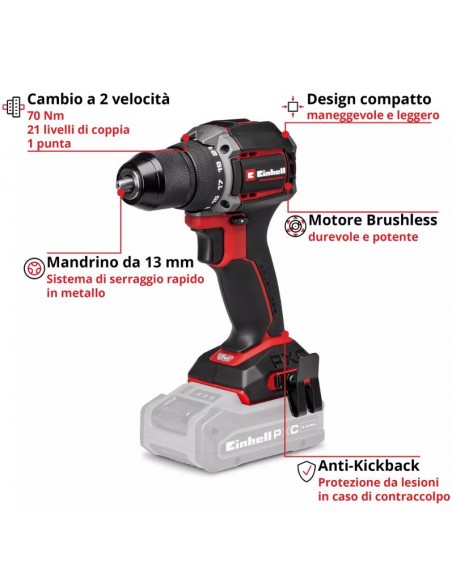 Trapano Avvitatore Einhell TP-CD 18/70-C Brushless 70Nm 18V Power X-Change 2 Velocità