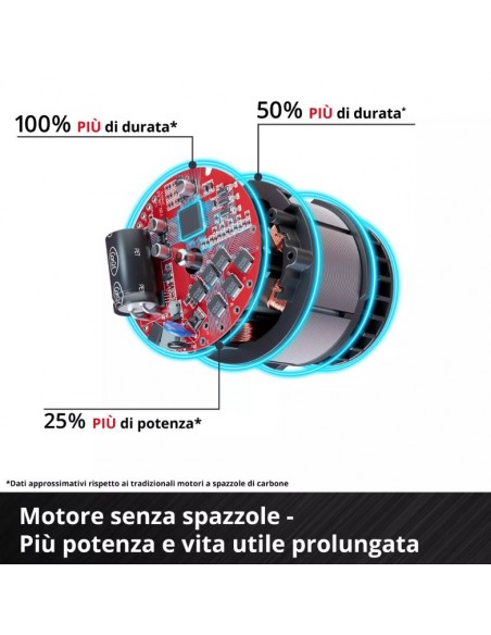 Dotato di motore Brushless, offre maggiore potenza, durata e minore manutenzione rispetto ai tradizionali motori a spazzole.
