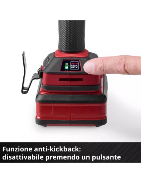 Il sistema Anti-Kickback protegge l’operatore in caso di blocco improvviso, riducendo il rischio di contraccolpi.