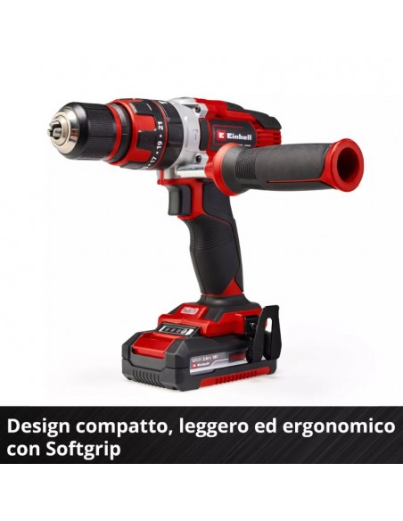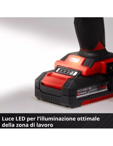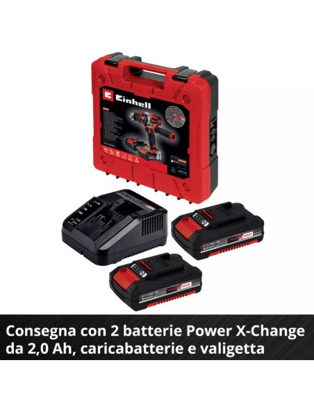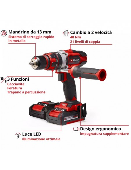 Trapano avvitatore con percussione Einhell TE-CD 18/48 doppia batteria 2Ah 18V due velocità mandrino in ferro 13mm Coppia 48Nm
