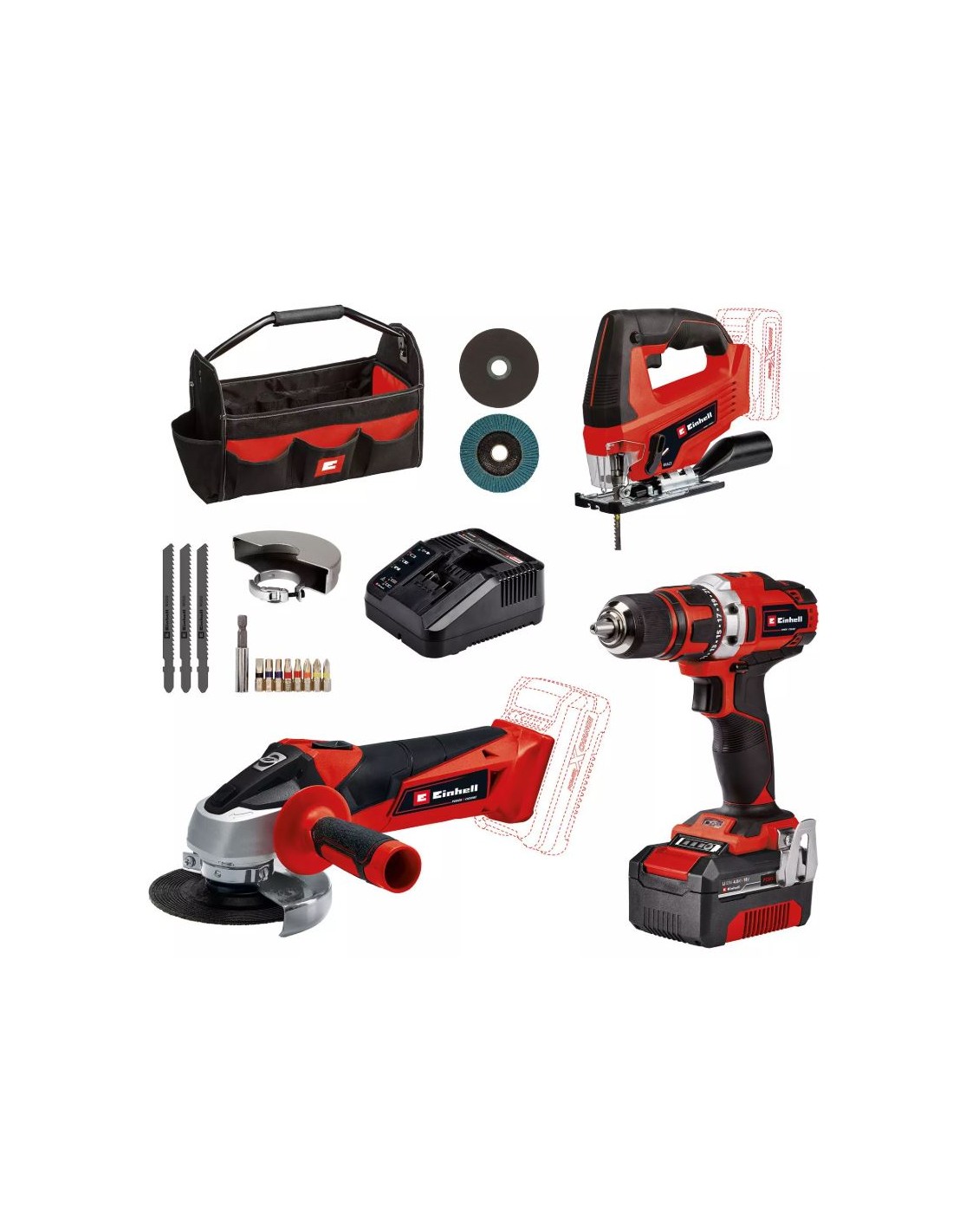 Einhell 4257241 kit smerigliatrice trapano avvitatore e seghetto alternativo a batteria 18V con borsa